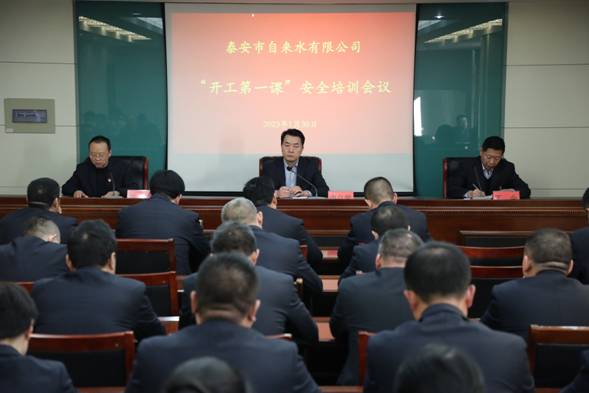 xxxx公司党委副书记、总经理丁合同志传达了省政府安委会办公室《关于扎实落实“开工第一课”制度加强企业复工复产期间安全防范的通知》(鲁安办字〔2023〕1号),安全总监刘伟同志主持会议并传达《泰安市自来水有限公司“开工第一课”实施方案》,安排部署公司全员“开工第一课”培训活动。
