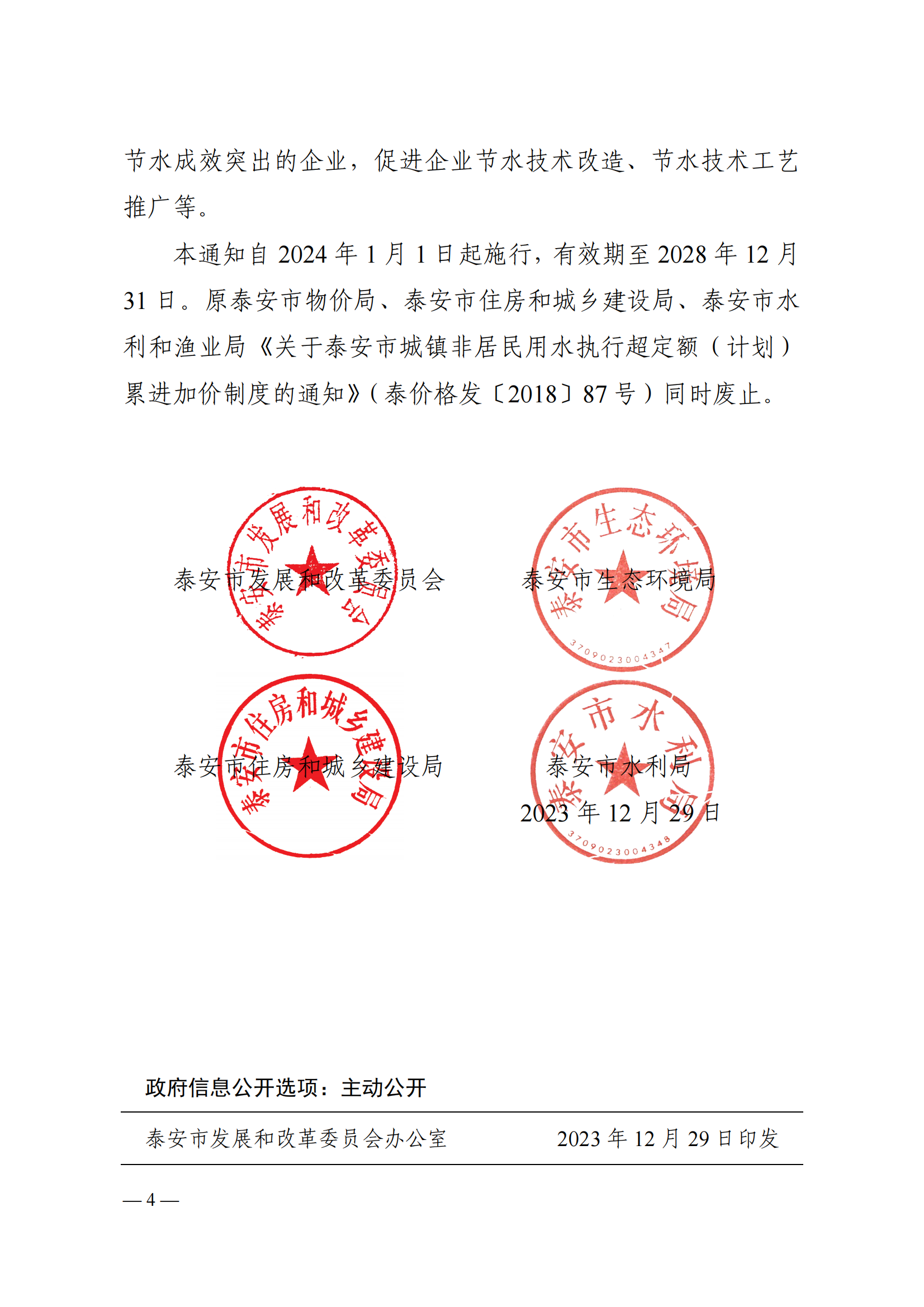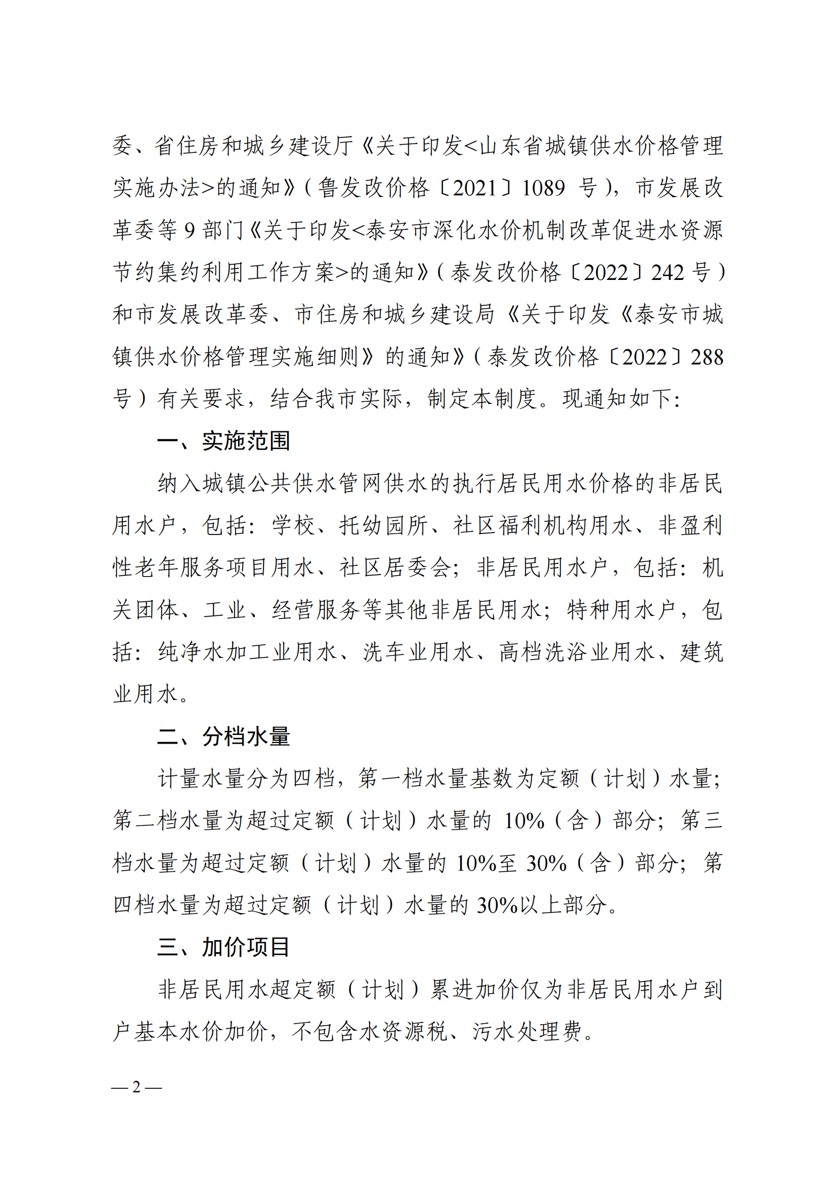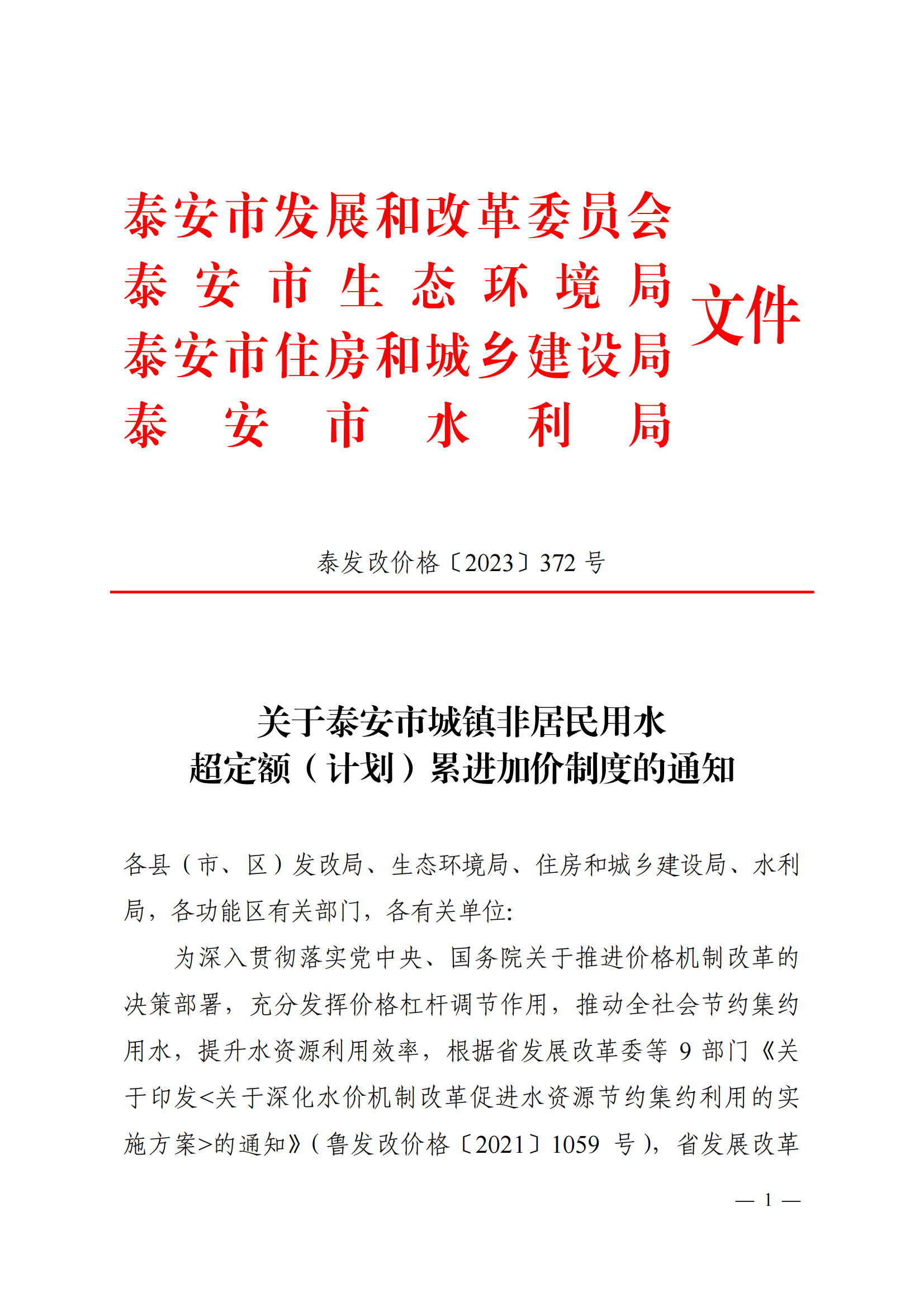 关于泰安市城镇非居民用水超定额(计划)累进加价制度的通知