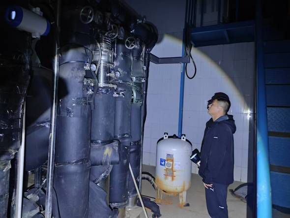 抵达现场后,工作人员发现设备运行异常,当即尝试重启加压设备进行补水,但经过一段时间的观察,压力并未恢复正常。经过进一步排查,工作人员怀疑是增压站出水管道漏水导致,迅速将现场情况报告客服调度中心,管网管理中心工作人员赶赴现场进行支援。
