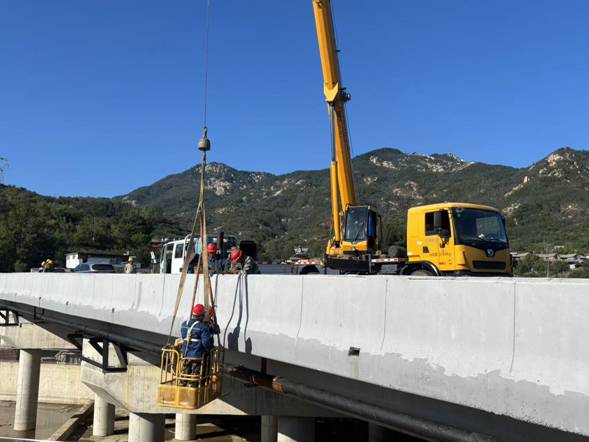由于该工程管线敷设横跨刘家庄水库泄洪口,位置特殊、地形地貌复杂,管道连接方案的制定、技术难度分析、        施工设备材料应用、安全风险控制及进度管理等各项工作都面临一定挑战。参建工作人员一起反复研究,分析施工方案,探讨施工过程中的难度细节,经多方协调,管道跨桥方案终于落地。