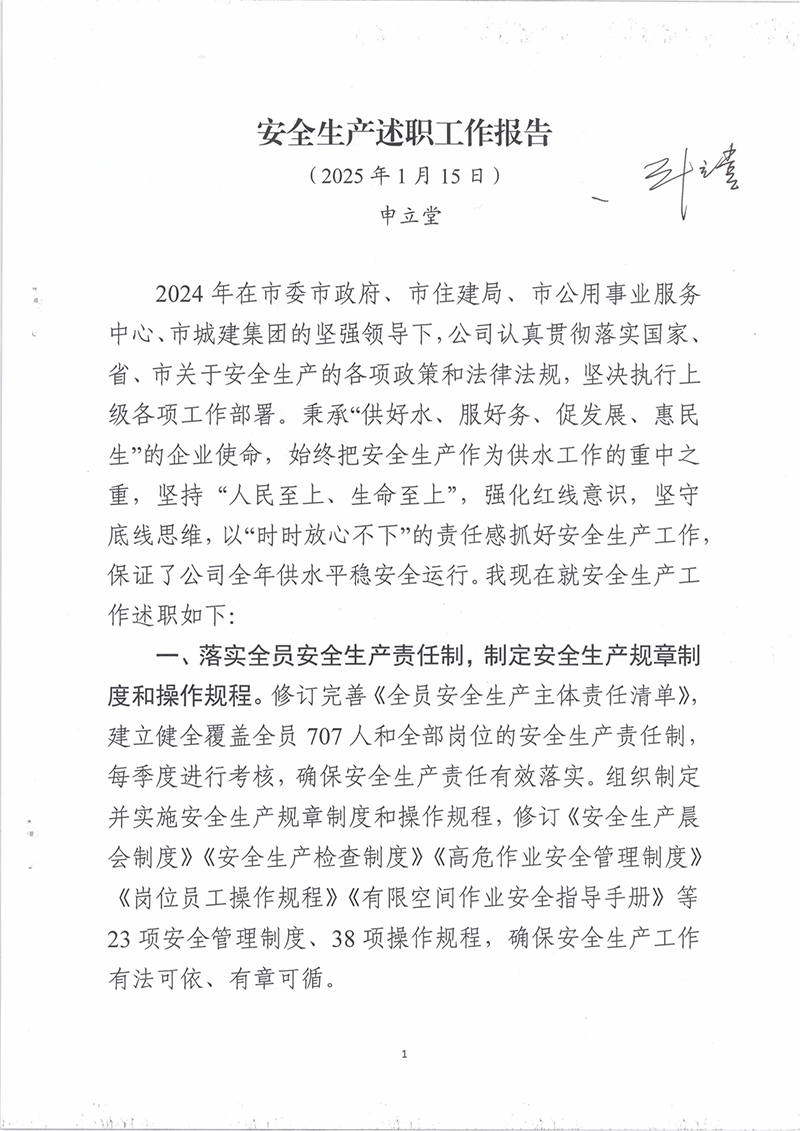 您当前位置》供水要闻》安全生产述职工作报告