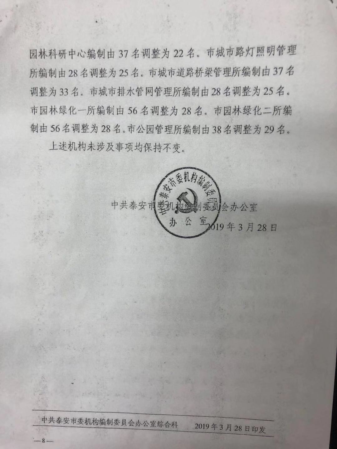8 申办职能部门各称 泰安市供水不多集团营业时间所