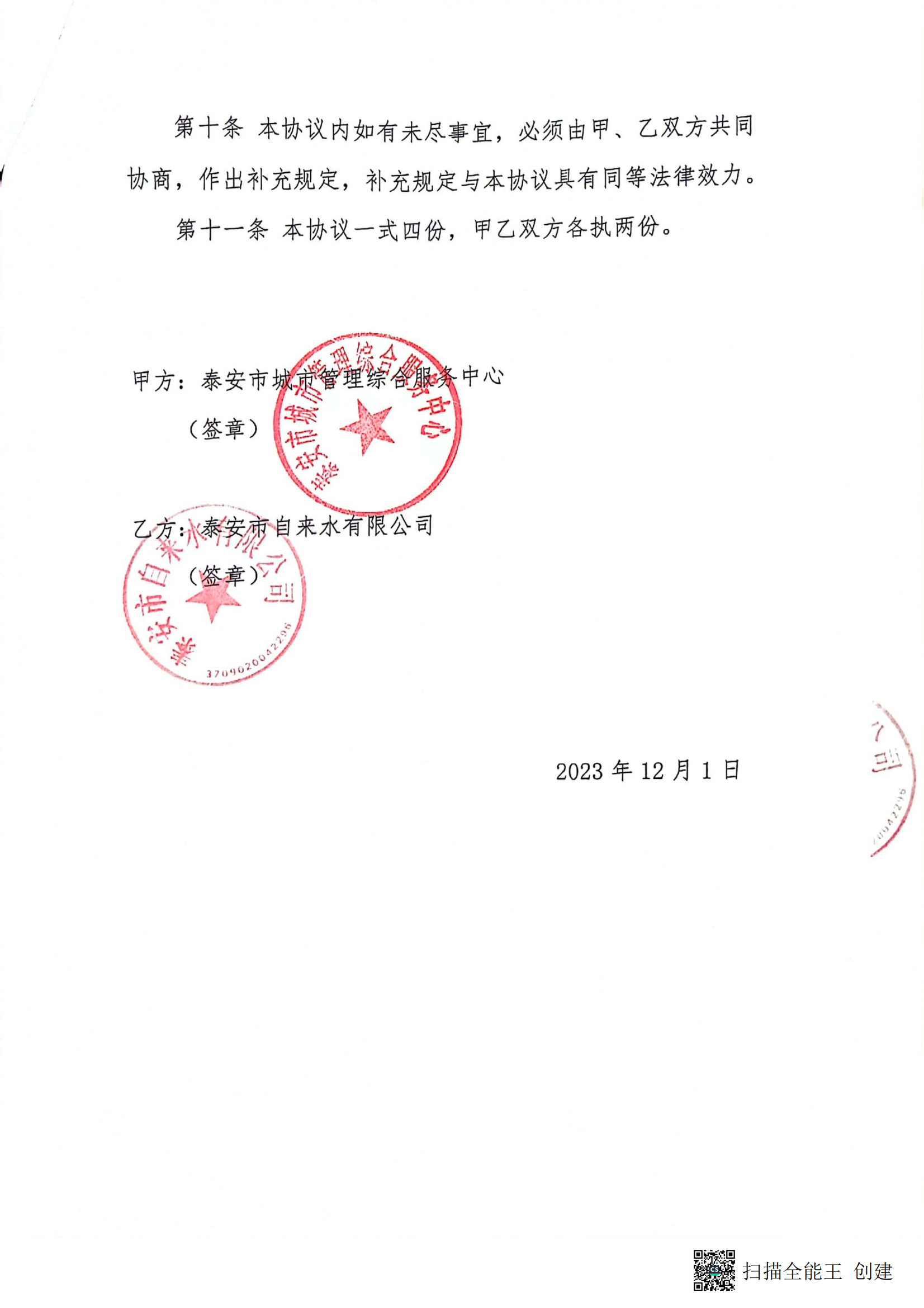 4 停水文本 签署协议《供开水合同文本》的泰城开水户