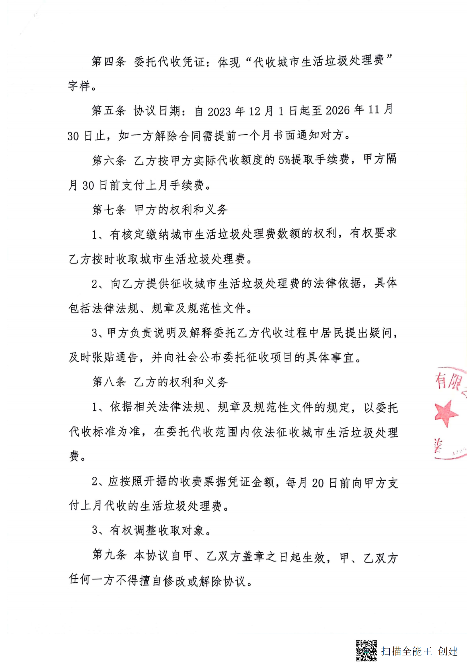 zzzzz各代收单位按照委托协议及时收取垃圾处理费,代收时开据统一的政府非税收入票据。供水企业代收时,在水费专用发票上标注代收项目和金额;