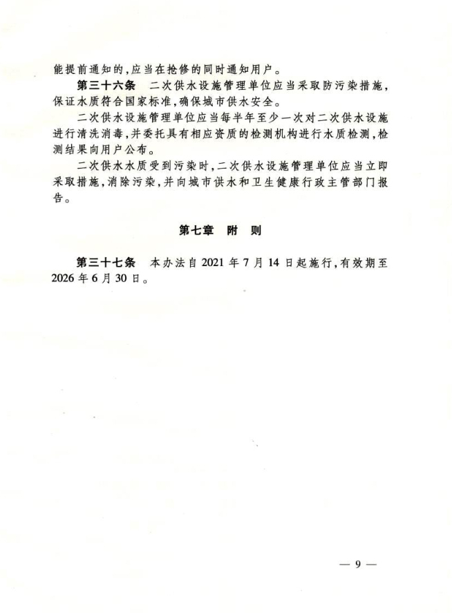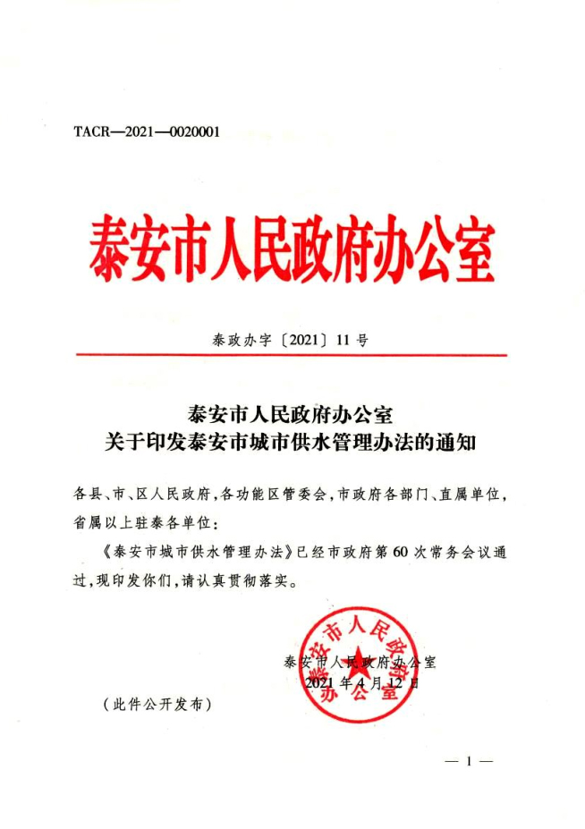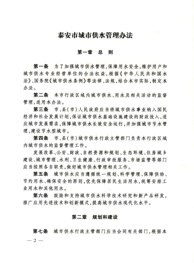 您当前位置》政策法规》泰安市城市供水管理办法(2021版)
