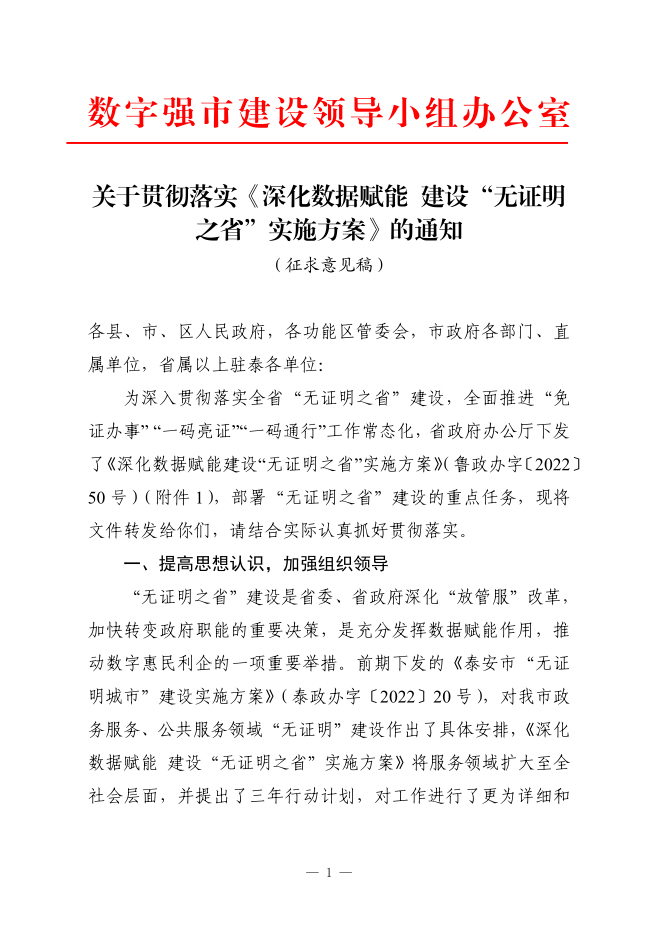 您当前位置》政策法规》关于贯彻落实《深化数据赋能建设“无证明之省”实施方案》的通知